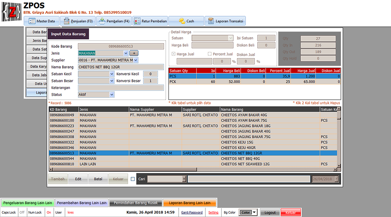 Saya terbantu sekali menggunakan program POS dari Zahran Solution, mudah di gunakan dan sudah memenuhi semua kebutuhan laporan di toko kami